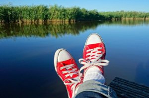 Mert ma bemerészkedem a tó vízébe, annyi hosszú év után. Na, nem nagyon, csak hogy érezzem mégis milyen a hőfoka. Térdgatyát húztam reggel, határt szabva a testemnek ezzel. Nincs tovább! Még a korlátot sem vagyok hajlandó elengedni.